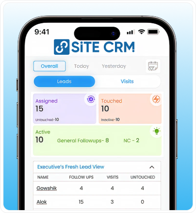 With Site CRM’s built-in live location tracking, you gain instant visibility into your on ground sales activities. Track executives as they attend site visits, meet clients, or travel between appointments all in real time.